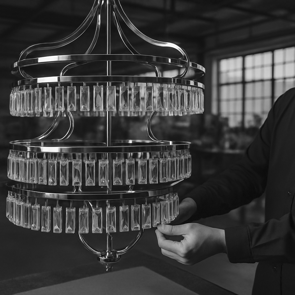 Every chandelier is shaped by precision and care — from crystal cutting to frame finishing — where no detail is ever overlooked.