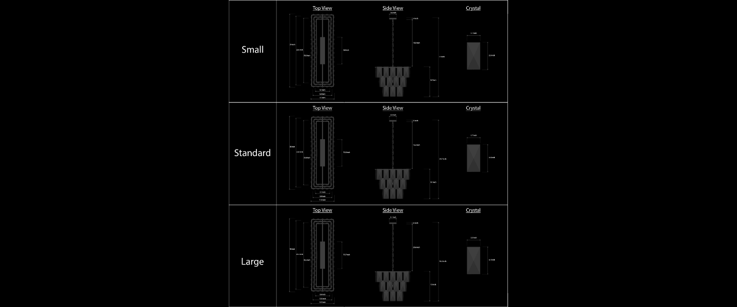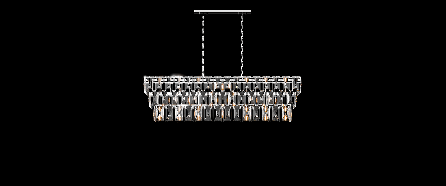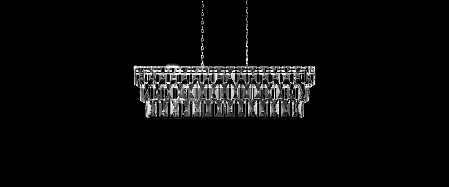 Axiera redefines linear luxury with its dual-tier form and precision-cut crystal grid. Its structured design and layered depth deliver a captivating, sculptural presence that transforms any space into a statement of modern refinement.