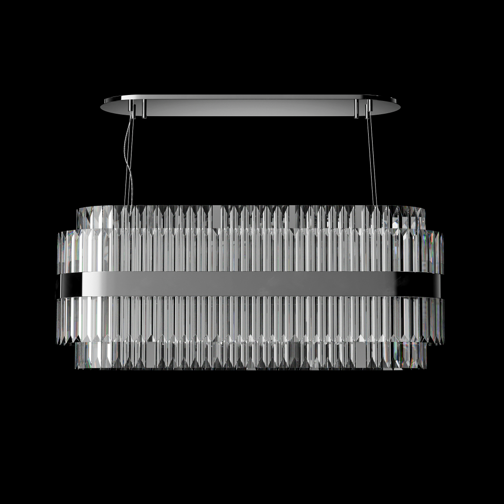 Axis makes a statement through balance — combining vertically set crystal prisms with a sleek metallic band that anchors its form. Suspended from an ultra-slim canopy, its structured silhouette radiates elegance and control. Perfect for dining spaces, reception counters, or galleries, Axis brings architectural precision to ambient lighting.