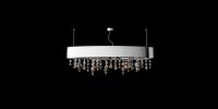 Drizzle features a slim, polished oval canopy from which varied crystal droplets descend in a free-flowing pattern. With warm amber and clear tones, each bead reflects light like suspended rain, creating a soft, cascading glow. Ideal for adding texture, warmth, and quiet glamour to contemporary interiors.