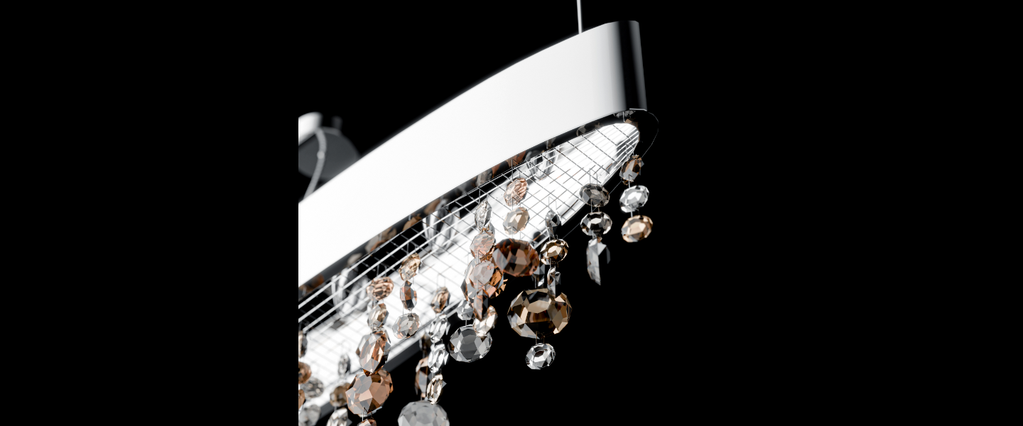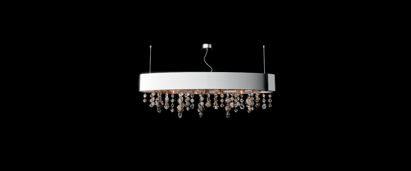 Drizzle features a slim, polished oval canopy from which varied crystal droplets descend in a free-flowing pattern. With warm amber and clear tones, each bead reflects light like suspended rain, creating a soft, cascading glow. Ideal for adding texture, warmth, and quiet glamour to contemporary interiors.