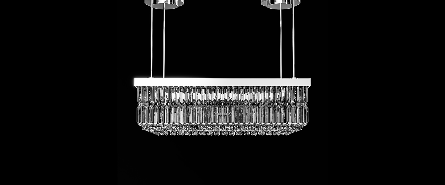 Ethereal is crafted for those who seek light as an experience. With a meticulously aligned array of faceted vertical crystals, it captures and refracts light in every direction — glowing from within like a crystalline horizon. The double-tiered crystal arrangement creates dynamic depth, while the rectangular structure makes it ideal for long tables or open spaces that call for linear grace.