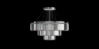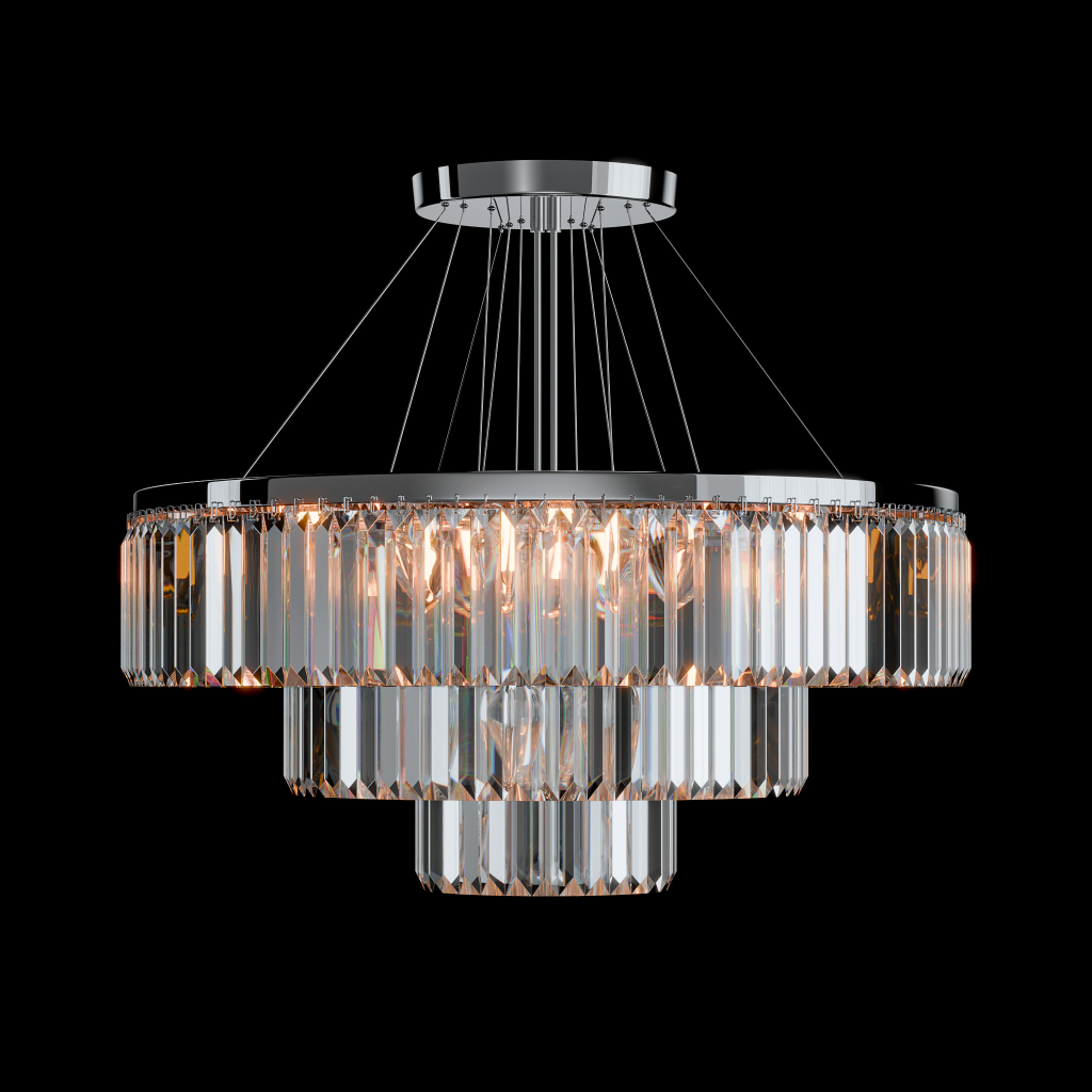 Lustra brings modern refinement to a classic tiered form. With elongated vertical prisms cascading in smooth, concentric layers, it forms a crystal bell that glows from within. Suspended with fine cables for a weightless effect, Lustra is ideal for dining rooms, galleries, or foyers that seek graceful verticality with radiant presence.