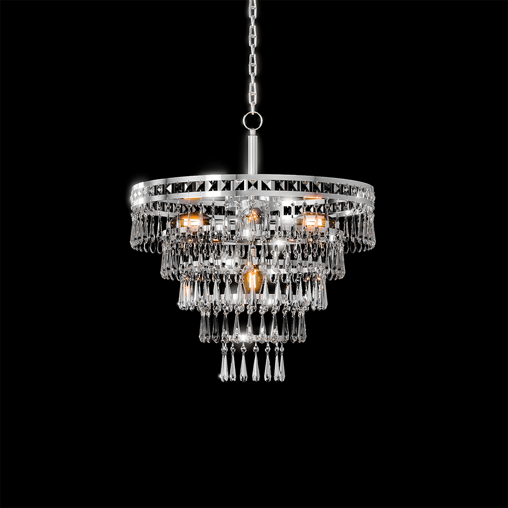 Tearfall draws inspiration from classic European elegance, with layered concentric drops of high-clarity crystals cascading down in a tapering silhouette. Each crystal teardrop is precision-cut and suspended to catch ambient light, creating a shimmering dance of reflection and warmth. Ideal for traditional or transitional interiors seeking a touch of timeless glamour.